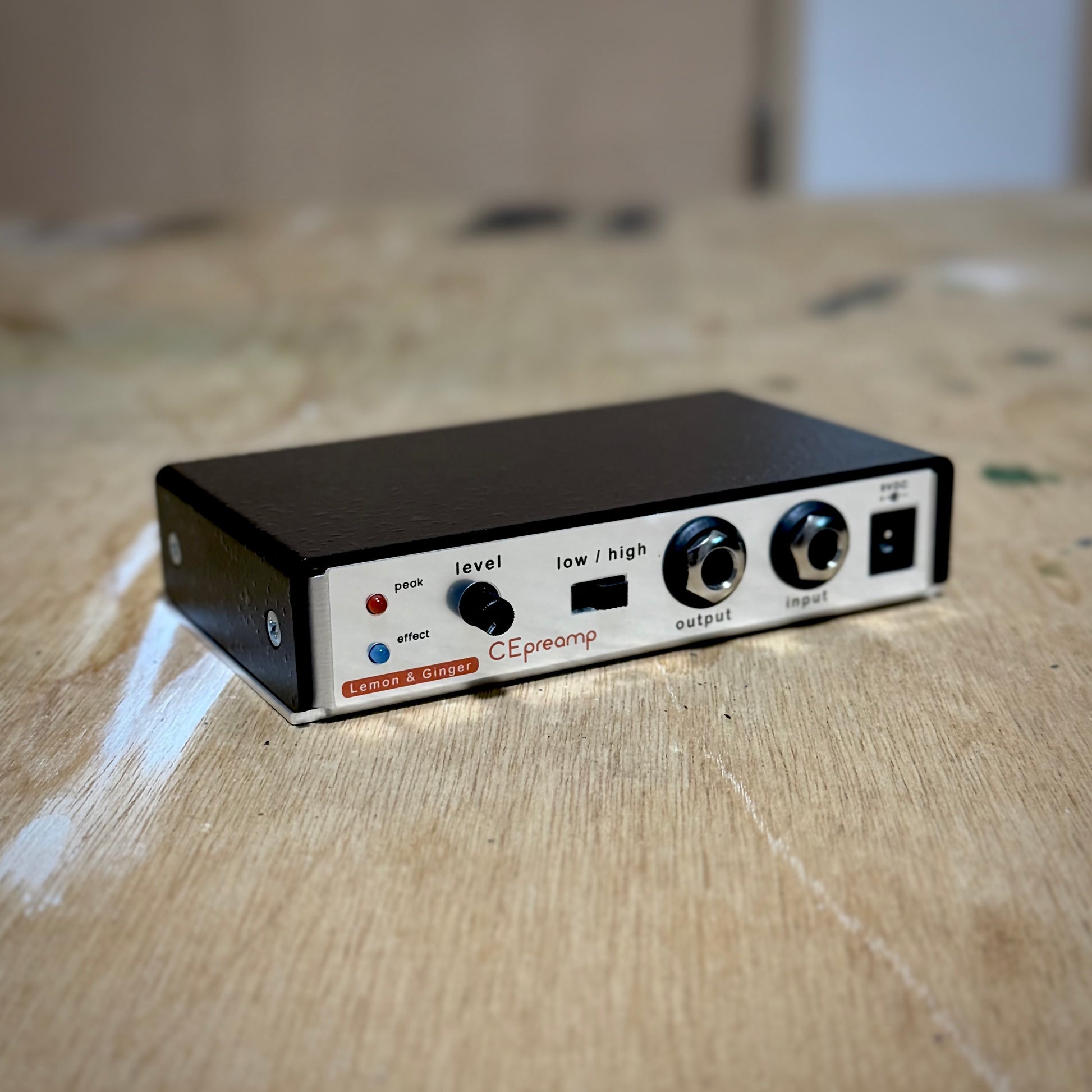 The CE Preamp is based on the preamp from the BOSS CE-1. The BOSS CE-1 uses ±13V for the preamp section, and the CE Preamp is similarly driven by a 9V power supply internally converted to ±13V. Because it uses the same circuit as CE-1, the CE Preamp also has low impedance. You will hear a muffled sound when you use the CE Preamp. That issue can be solved by placing a buffer pedal in front of CE Preamp.